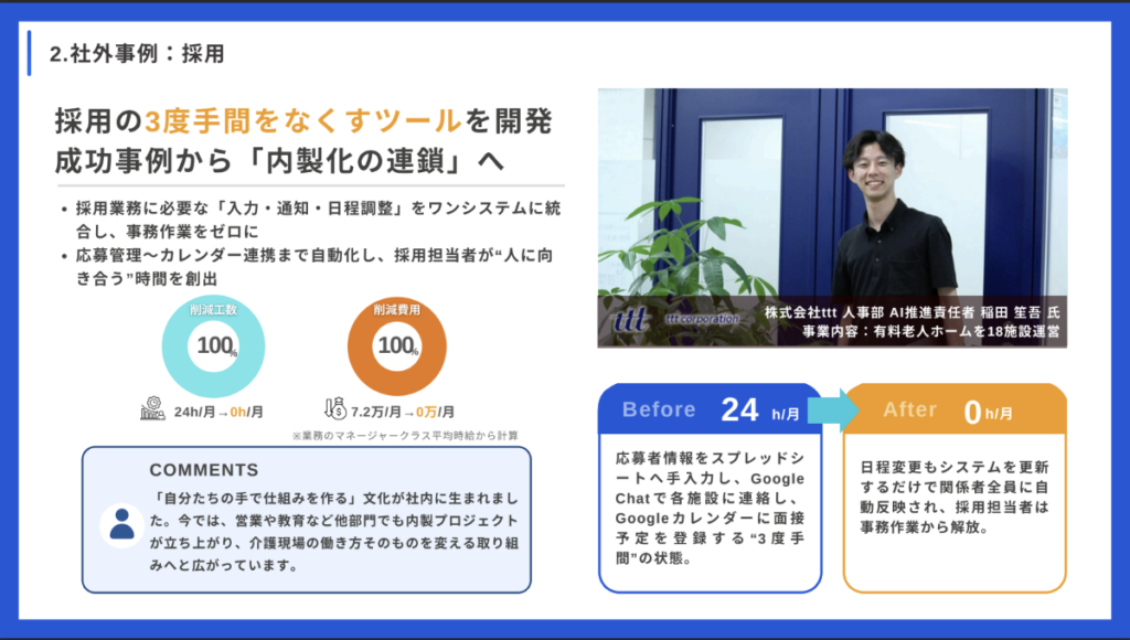 事例4【採用】採用の3度手間をゼロに、内製化の連鎖へ
